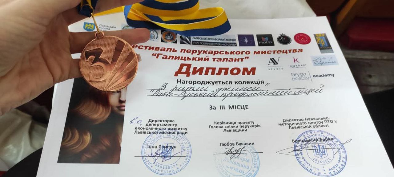 🏆 3 місце – «Реконструкція волосся» (студентка групи 24 Карпляк Аліна)!